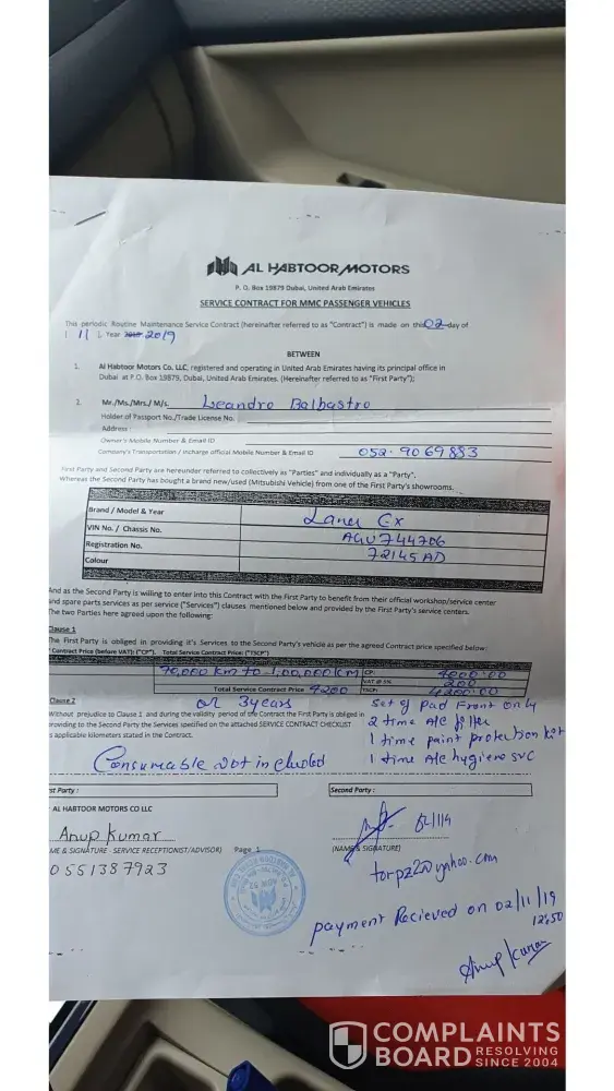 Read full complaintMitsubishi Service Center Mussafah - Interpretation of service contract