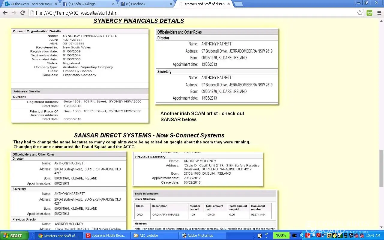 Ceitinn has been running scams for a decade with protection from the Qld Fraud Squad.