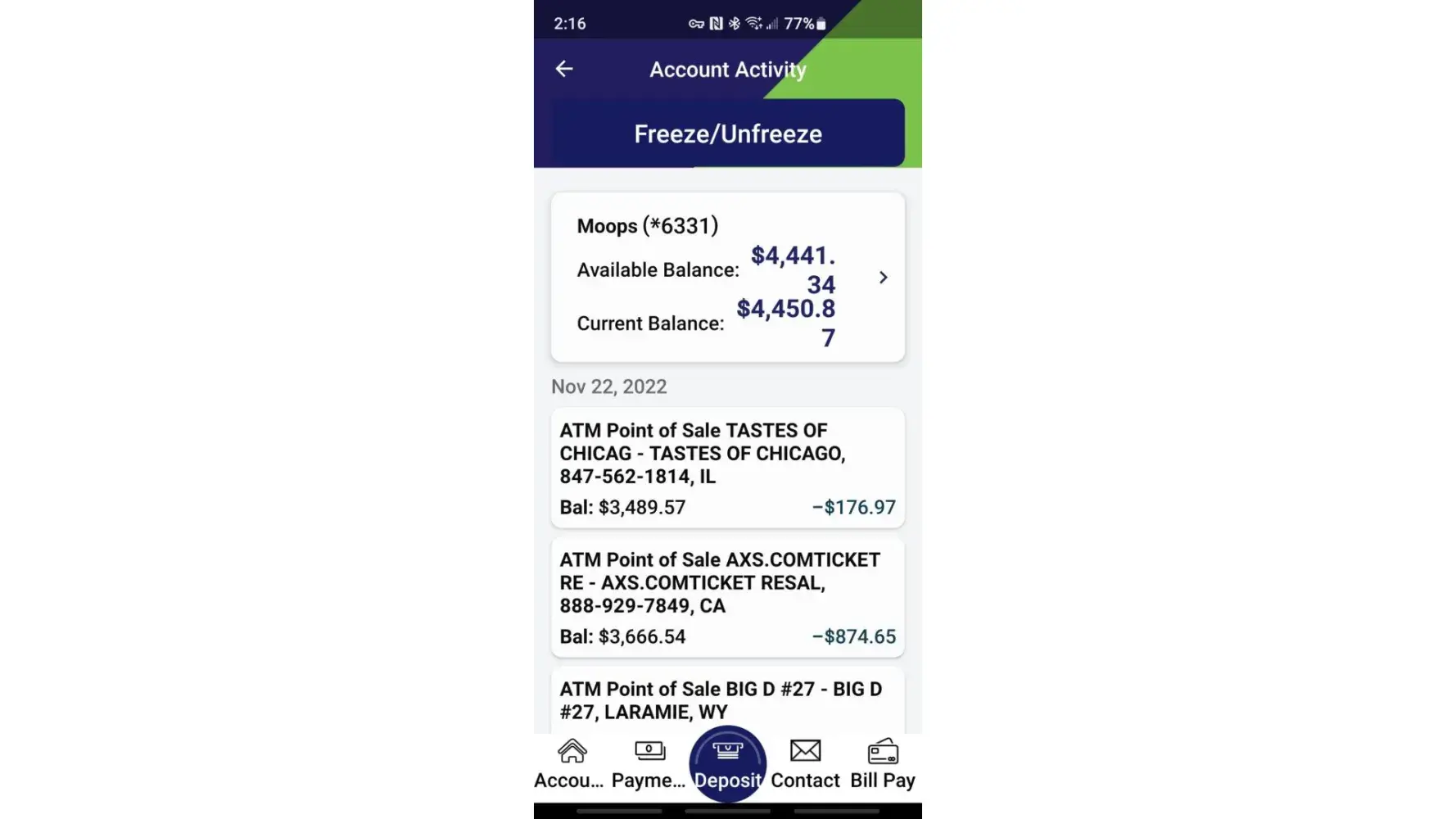 My AXS account *** will not transfer my funds I initiated in October 2022. Still unable to transfer my money out of the account. Also unable to add a new debit card for transfer money destination.