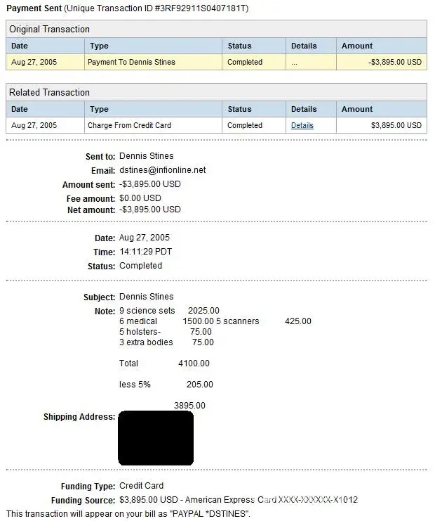 I thought of this person, Dennis Stines, as a friend. I would even send him Honey Baked Ham selections at the holidays to show my appreciation of our friendship. My wife and I had dinner with him and Peggy in Maryland when we drove to meet them. I had what I believed was a business and personal friendship with him. I would buy prop kits and other items that...
