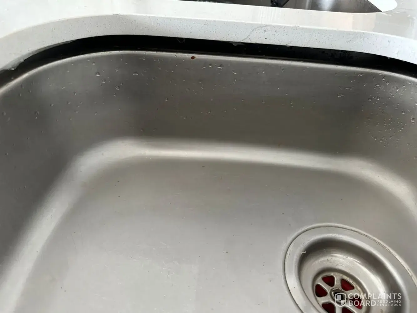 The kitchen sink deattached from the counter top. Which caused a gap between the sink and the counter top.