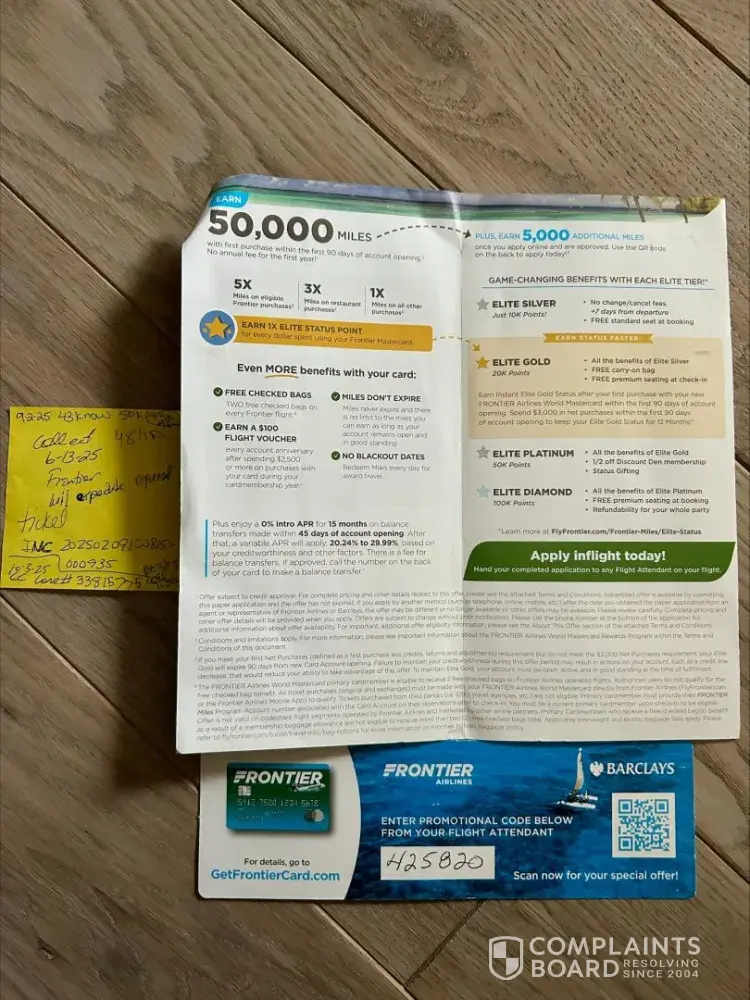 Credit card promo via frontier airlines