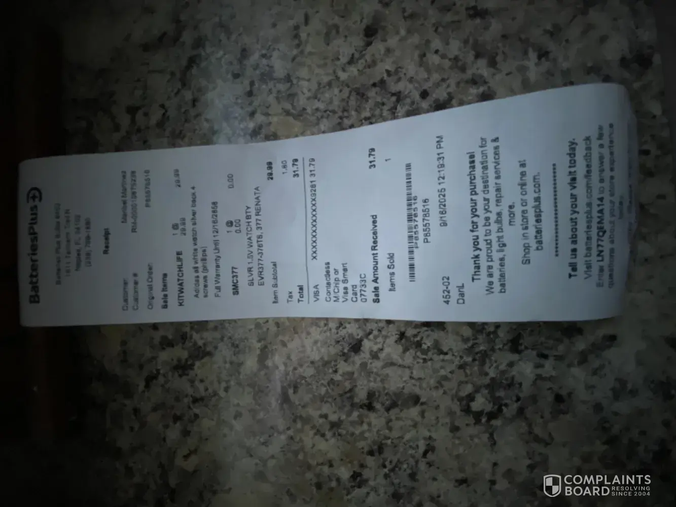 Tho whom it May concern Isl filling this complaint regarding the treatment I received at Batteries Plus Store #0452 in Naples, FL, as well as a serious issue with missing warranty records. I visited the store on January 27,2026 to purchase what should have been my third KitEstchLife watch warranty. Before buying it, I asked the staff to confirm how many...