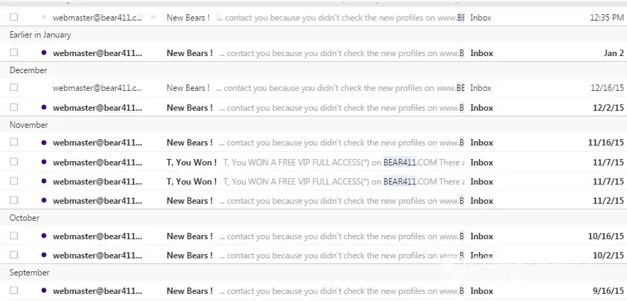I receive emails twice a month from Bear411.com. It was for a profile I have not logged into for YEARS. I recently tried to Opt Out. It is impossible. There is no "Opt Out" link in their email. When I log into my account there is NO WAY to turn off these emails. Whoever is desperately trying to hold onto an outdated profile website needs to find a new career and stop pestering people.