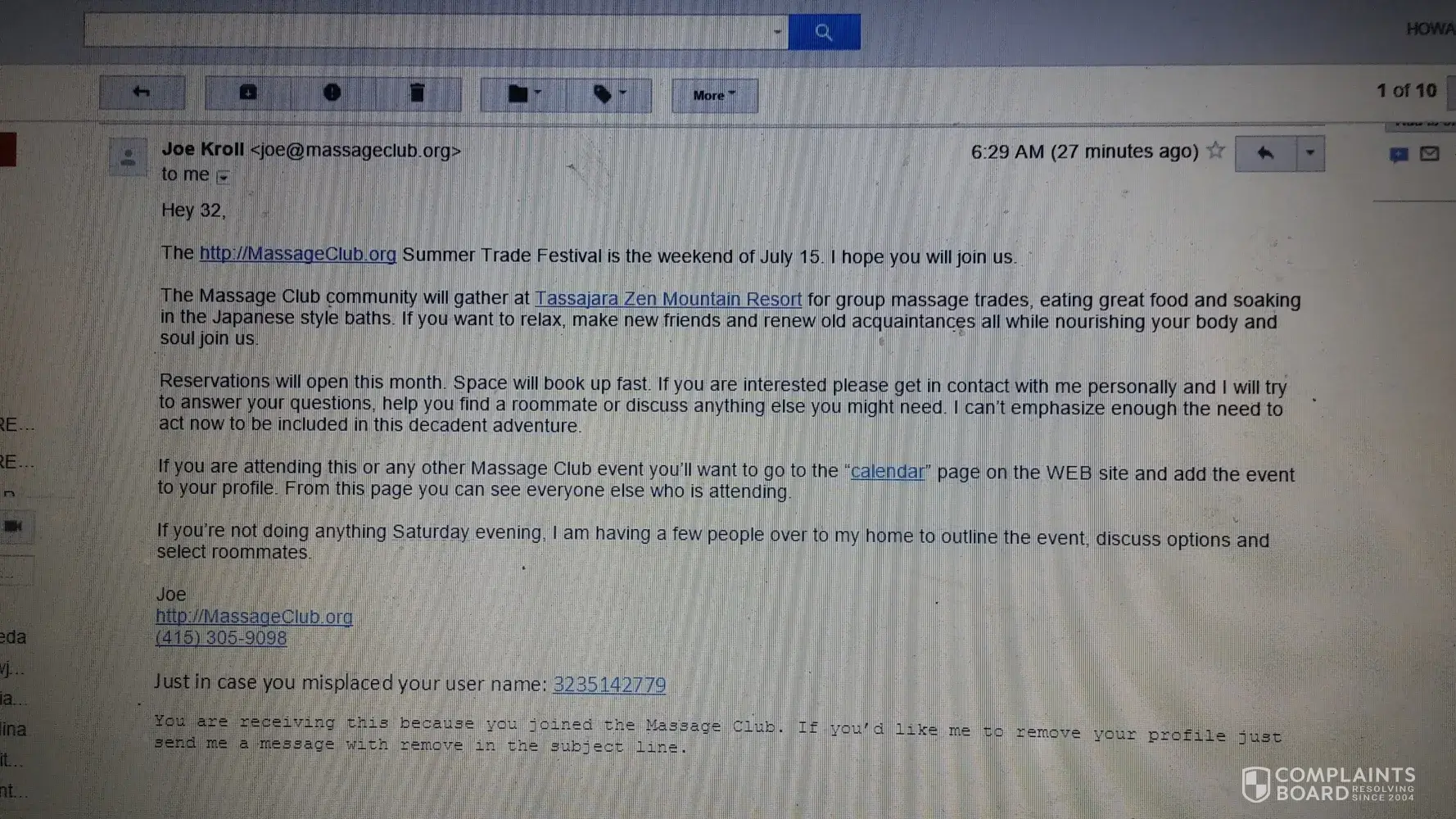 Massageclub has refused to stop spamming me and contacting me and emailing me! Regarding: Mr. Joe kroll, Owner-founder Massageclub 1345 fillmore street apartment #302 San francisco, california [protected] [protected] Very serious complaint! I have asked mr. Joe kroll, the owner-founder of the massageclub to take me off the list and to stop emailing and...