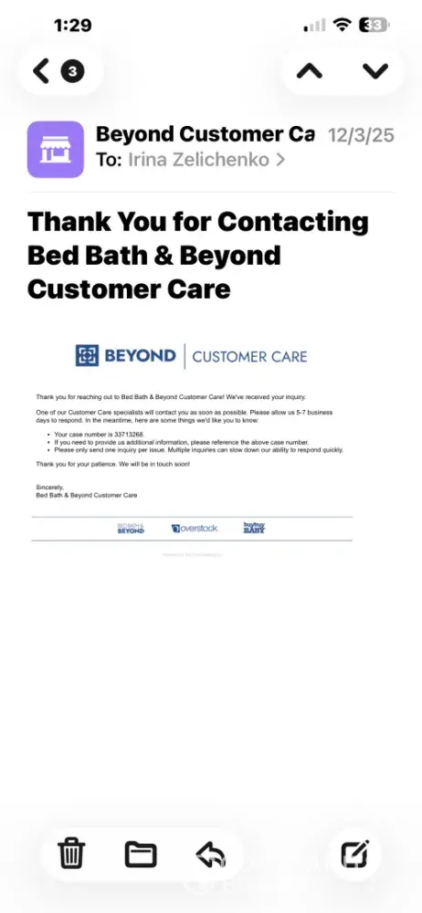 Bed Bath & Beyond has received 10 positive reviews on our site. This is a good sign and indicates a safe and reliable experience for customers who choose to work with the company.