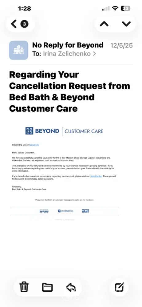 I made a purchase with Bed Bath & Beyond yesterday. I got funny feeling this morning, and decided to check on the order. I managed to get 3 different phone #s, no one spoke basic english, or new of my order. After checking my account, they've already removed the cash from my account. Bed Bath and Beyond have 1 star ratings with a number of company rating facilities. Had I known this prior to purchase, there is no way I would've done business with them. This is a new situation, but be sure I'll keep everyone abreast on the matter.