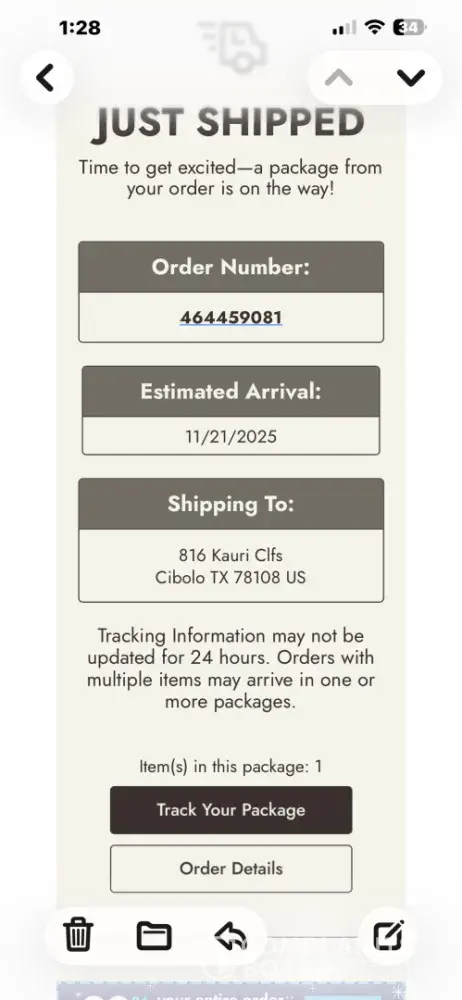 It looks like an item has been delayed. We're sorry for the inconvenience! You can continue to track your order status and estimated arrival date here in your My Account page.