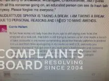 I am carrie aka sphynxlove and I was put up to this by Maggie Crabtree. Come to find out that she is just a vindictive woman who is out to get breeders. So i need to apologize for all I have said about everyone. I am not a bad person, just damaged and angry. My husband is a jerk and I get pulled in to things. I lied about everything.