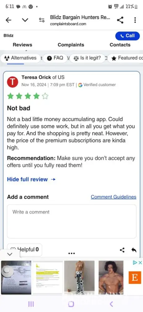 Blidz has a 2.6-star rating from 42 customer reviews, reflecting mixed experiences where some bargain hunters were satisfied while others were not.