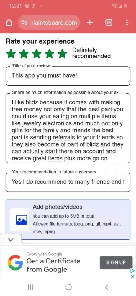 Blidz is kind of misleading, you have to pay $12.99 for the membership in order to earn any money back. And if you don't sign up for the membership then you can only get $0.10 cents every so often. I got an email asking for a review and in return I'd apparently get $25 but I'm still a little skeptical, so I guess we will see. I will update this review if I really do get the $25.