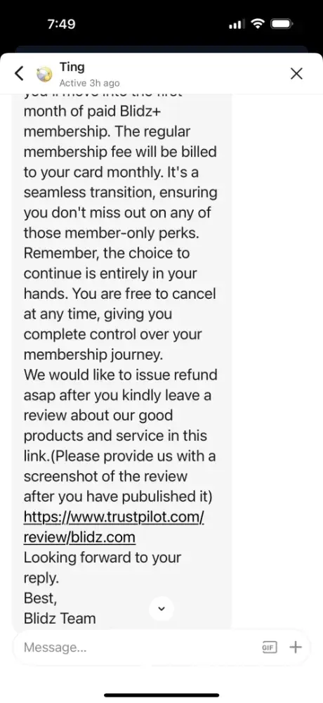 It’s understandable why you’re frustrated after being charged $27 without realizing it. If Blidz charged you without clear consent, they should be taking action to refund your money and issue an apology for the confusion. Hopefully, they respond quickly to your request before you escalate the situation further. Make sure you document everything and reach out to their customer support to push for that refund and apology.