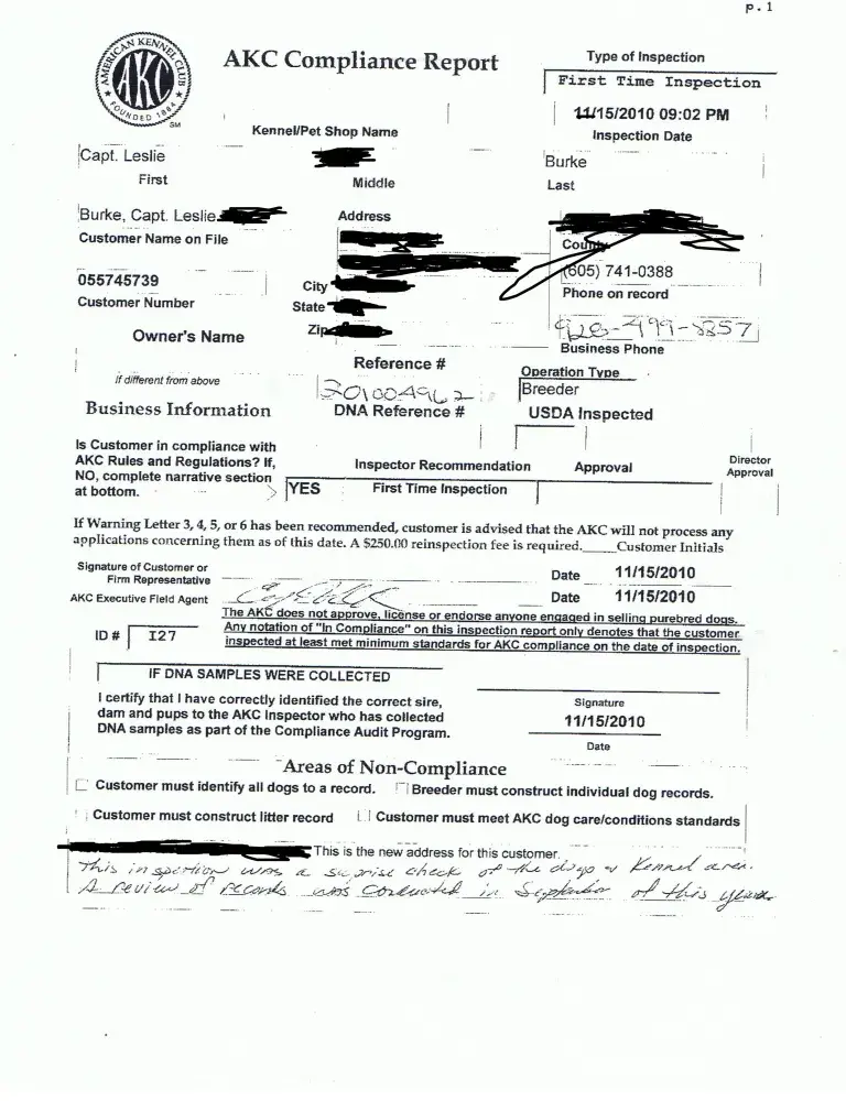 Please notice that the AKC Inspected our dogs and property on the 15th of November and Kathy posted the origional complaint on November 16th.