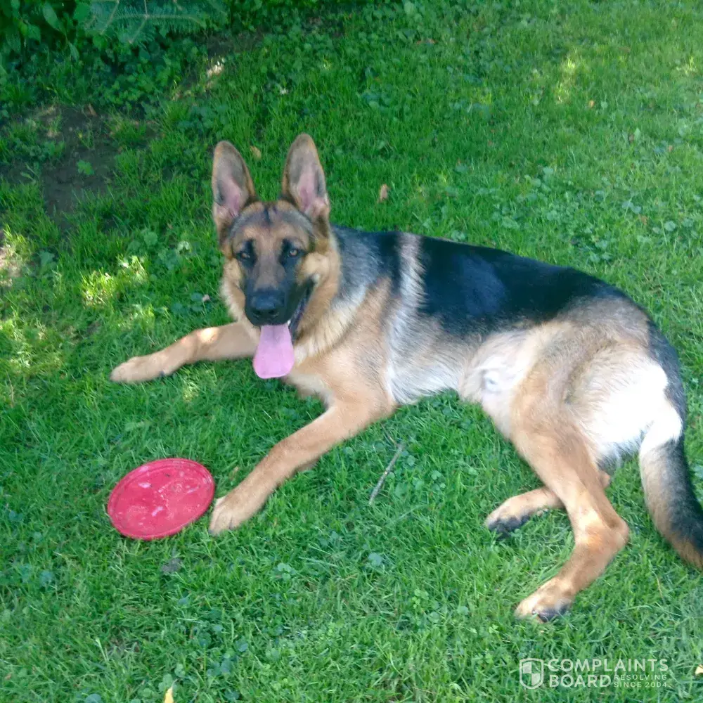 I hope this helps you in making your decision, or at least gives you up to date info regarding kathy. she does not have her act together. she is a scammer of the highest quality... I will attach a picture of our dog’s foot and [censor] stripe. buyer beware. the first place we are reporting her to is the bbb. good luck!