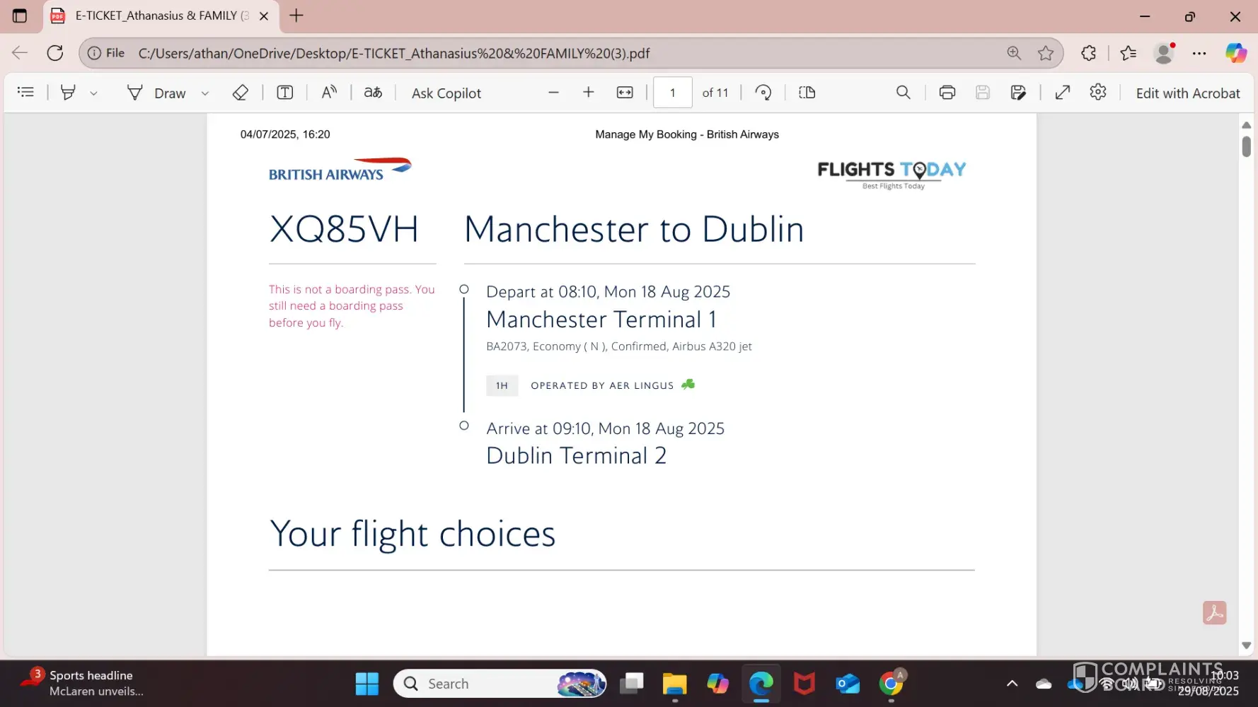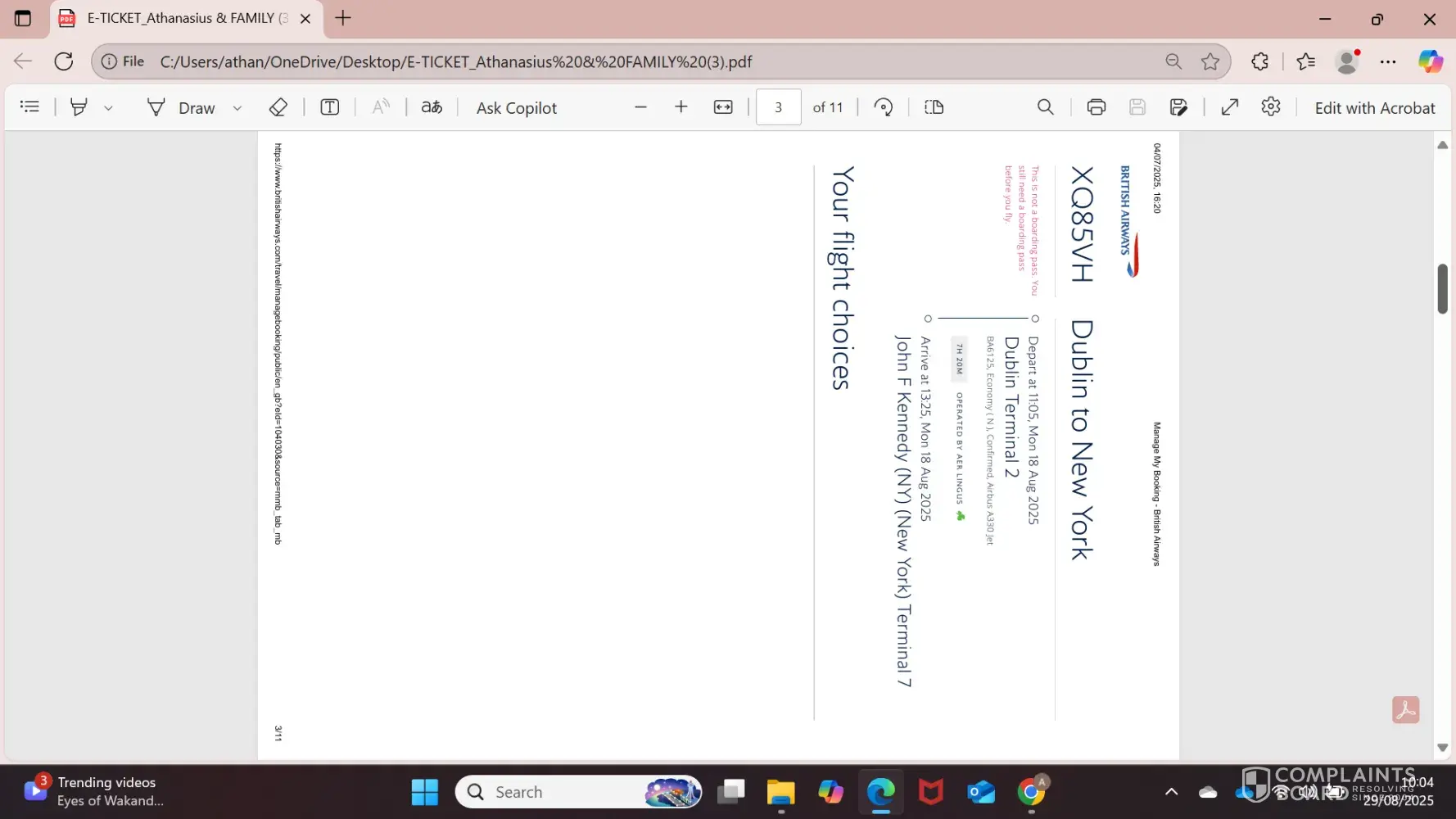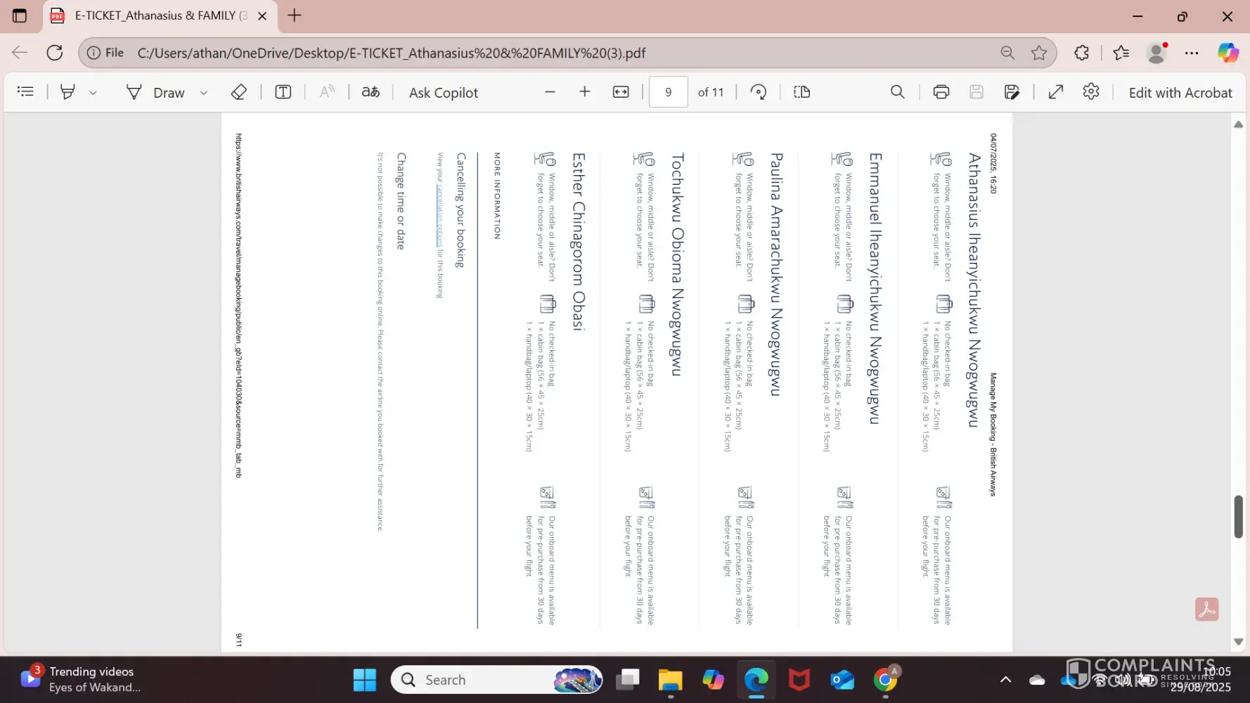British Airways BA flight #0239 October 23, 2023, seats E and F
