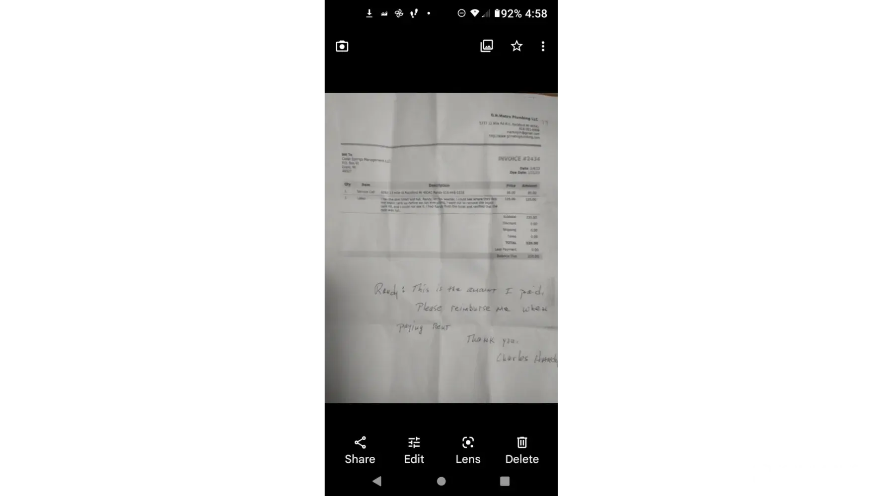 G.R. Metro Plumbing LLC - Should reimburse me for the $295
