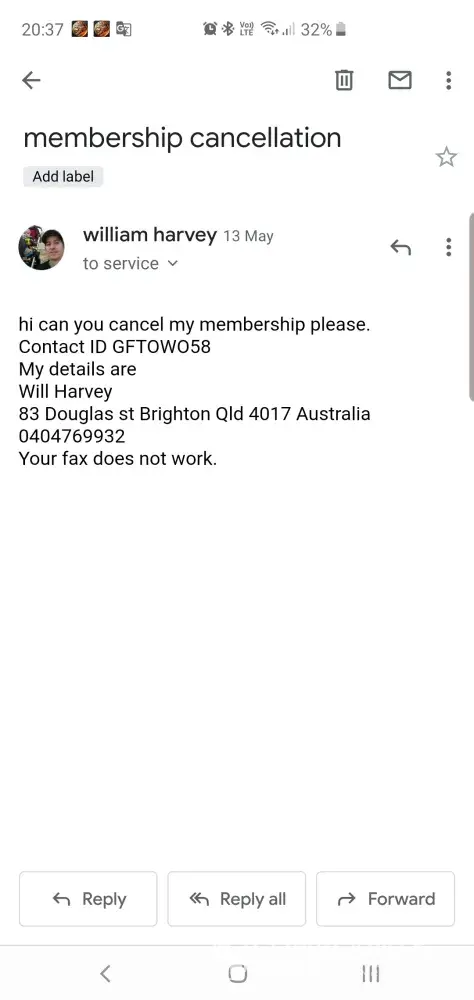 The other option is to fax them in which I've tried, left them a message saying I requested to cancel my membership and mentioning my contact ID as well. The email also tells me to post to them with the required address of the company but I don't know if it's just a cancellation form that I have to send or can I write a letter to them about cancellation.