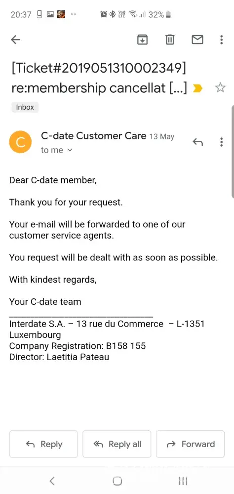 we're sorry to hear about your complaint. Please contact us directly at cs @ c-date . com from your registered email address and add ''complaintsboard.com'' into the Subject header.