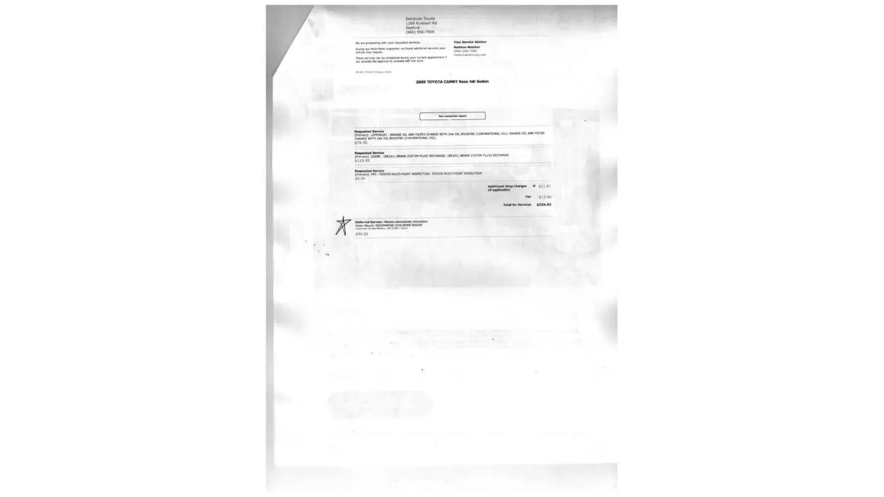 On 09/13/23, my car was taken into Seminole Toyota for service. I was advised that in addition to the oil change, it needed the Brake System Fluid Exchange, which we had they do. Upon leaving my service advisor said the Dog Bone Mount needed replacing due to its wearing. On 9/17/23, I was emailed the Multi-point Inspection report, which included further...