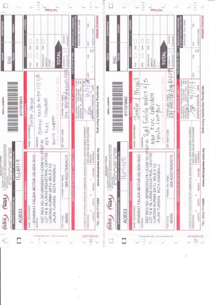 Syarikat Falida Motor (S) Sdn Bhd - Uncollected documents