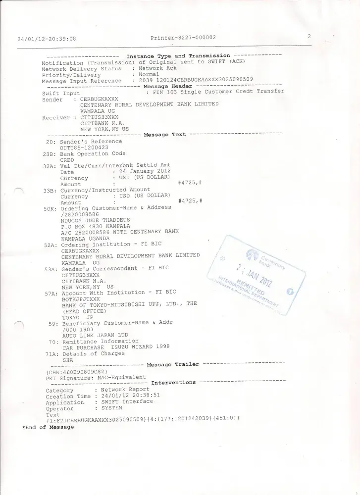 I paid for an Isuzu Wizard 1998KH-UES73FW 3, 000cc Manual 64, 000km Diesel UES73FW 1unit US$4, 700 tradecarview ID:504959-R11113005. Roshan sale director confirmed receipt of payment. Two months down the road car has never been delivered, never have I received the Bill of Laden