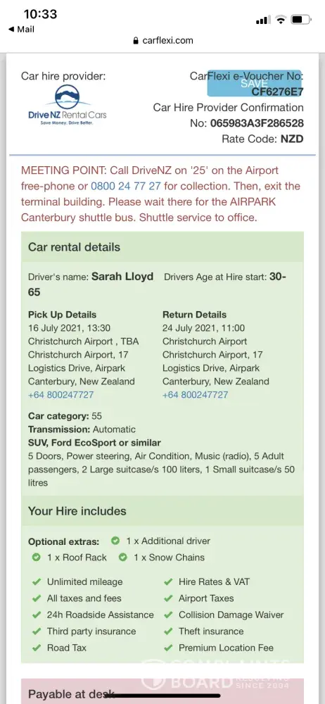 I want a refund of the deposit of NZD $136.41 repaid immediately as well as the difference I had to pay for the Avis car which was nzd $1978.58