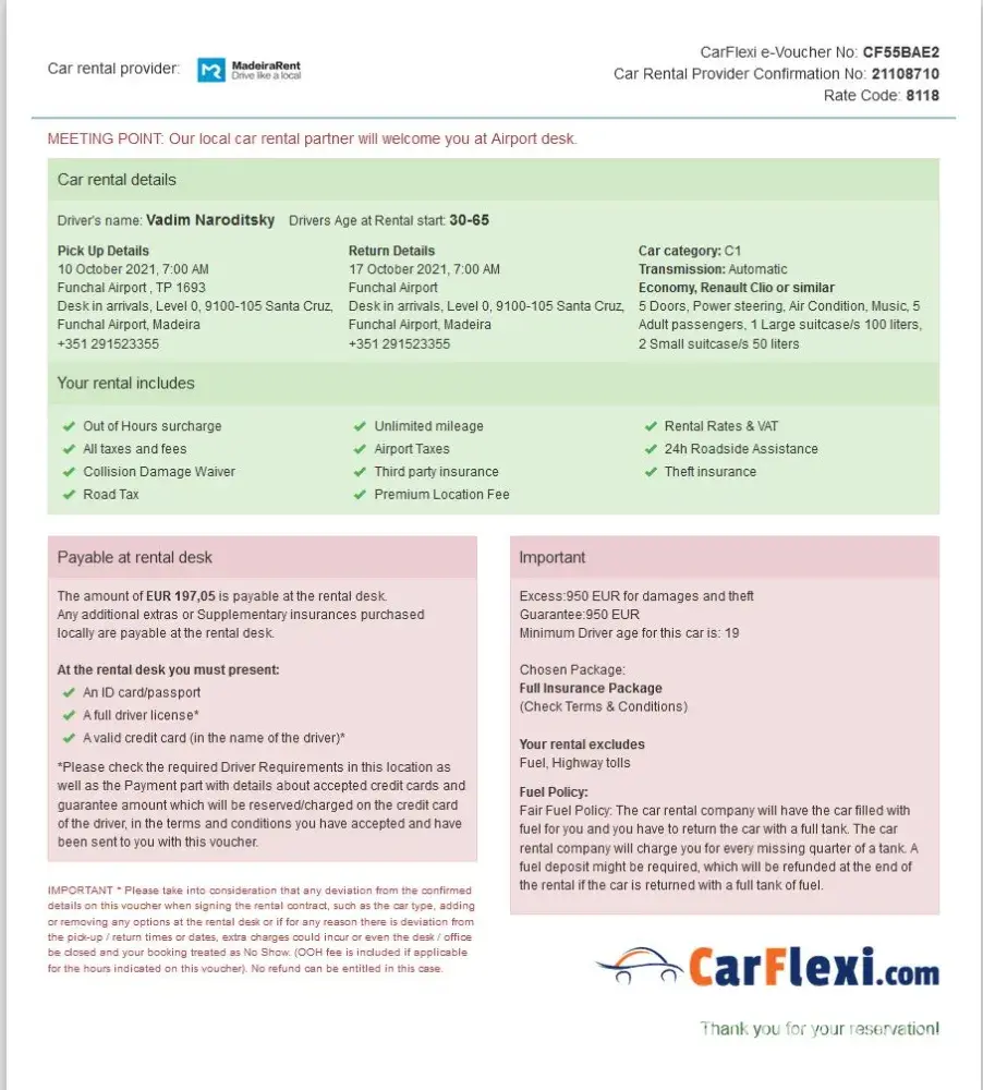 Booked a car in Montenegro in July 2021 (voucher CF5DC0B2)