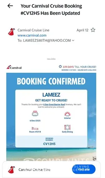 I am writing to register a formal complaint regarding a series of discrepancies and service failures in relation to my recent booking experience with Carnival Cruises. I have encountered multiple issues that have resulted in significant inconvenience and financial loss, and I respectfully request a prompt and satisfactory resolution.