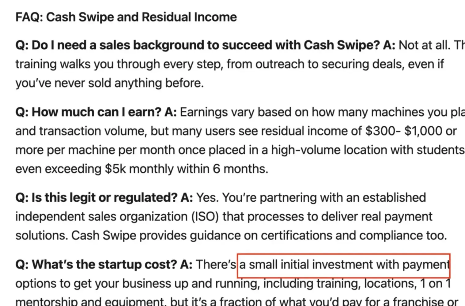 Cash Swipe Business opportunity scam (merchant rookie, merchant hero, merchant elite, etc.)