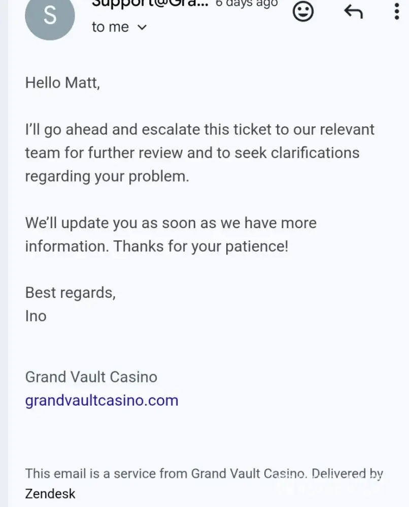 Grand Vault Casino - Breach of contract