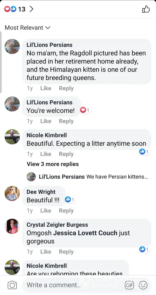 Read full complaintLil Lion Cattery Persian Jessica Lovett Couch - sells mixed breed kittens as persians to innocent people