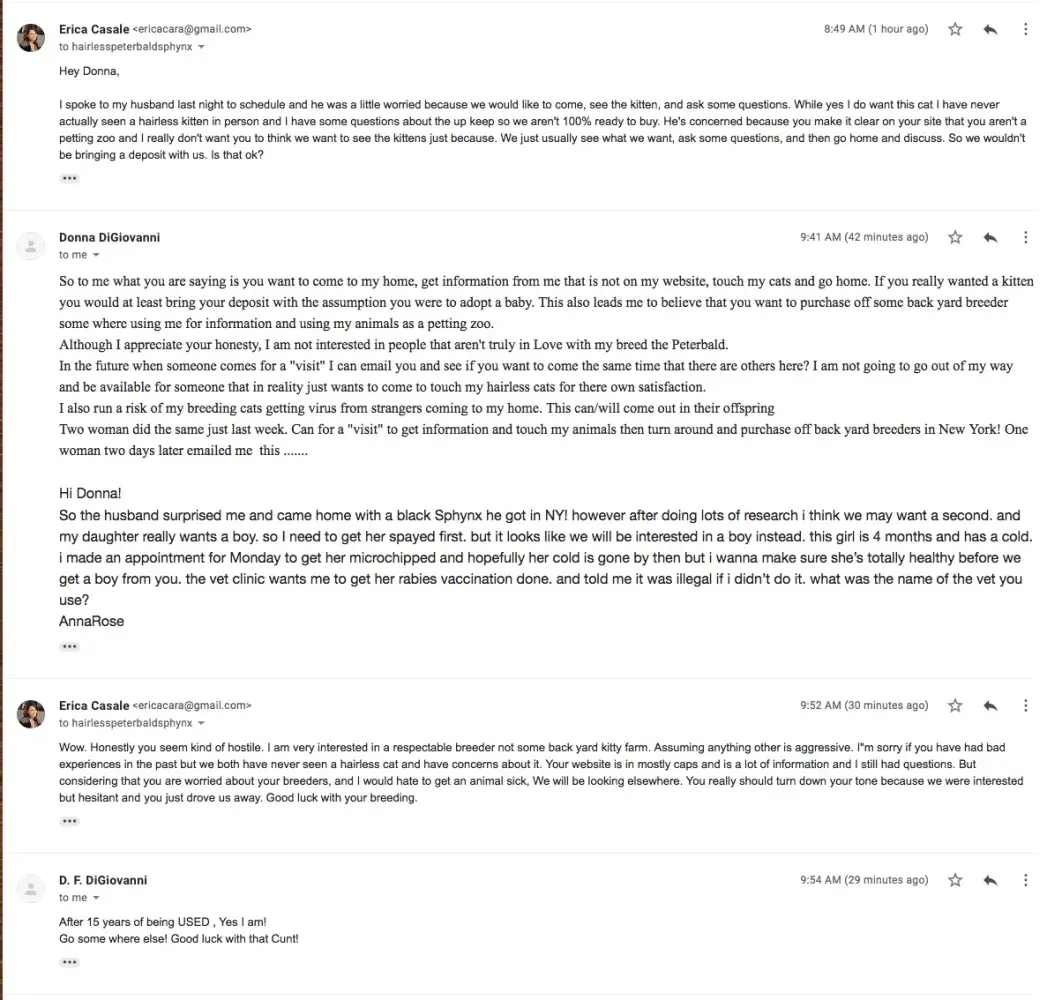 Read full complaintHairless Peter Bald Sphynx - Donna DiGiovanni - cat breeder