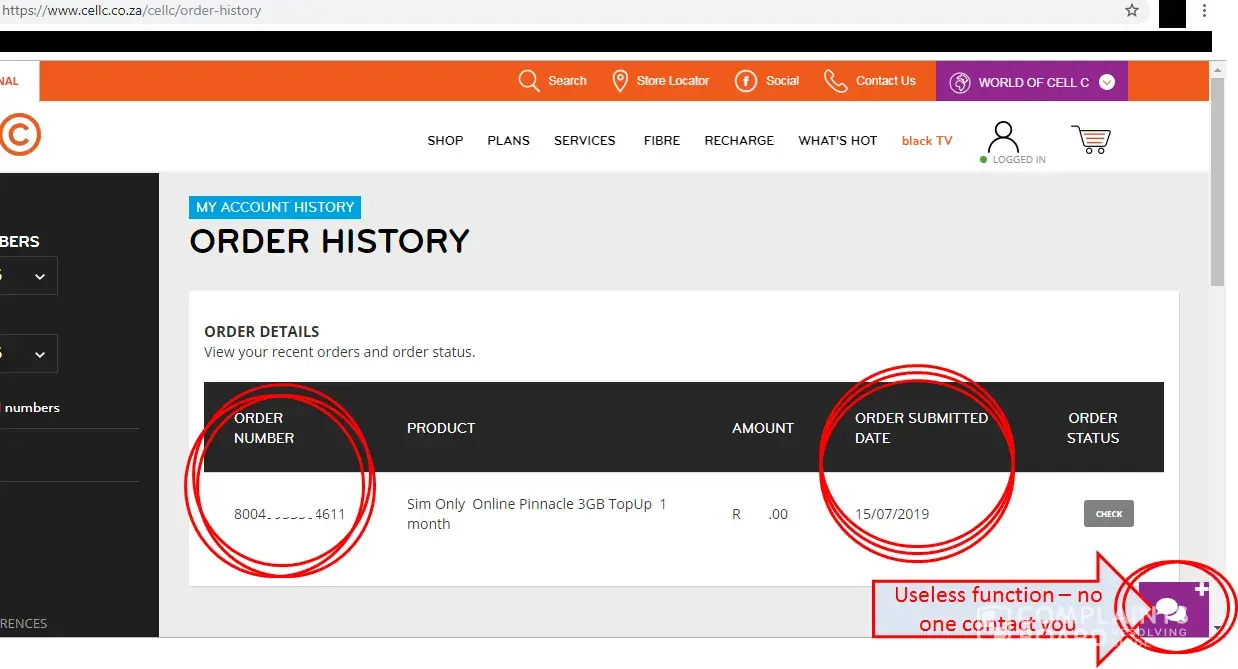 At one stage I gave one of the ladies assisting (the one that couldn't find the order on my name) the order number which I got from my CellC online profile. Guess what, this is transparently not a valid order number. Not one they know. ? once again, how?