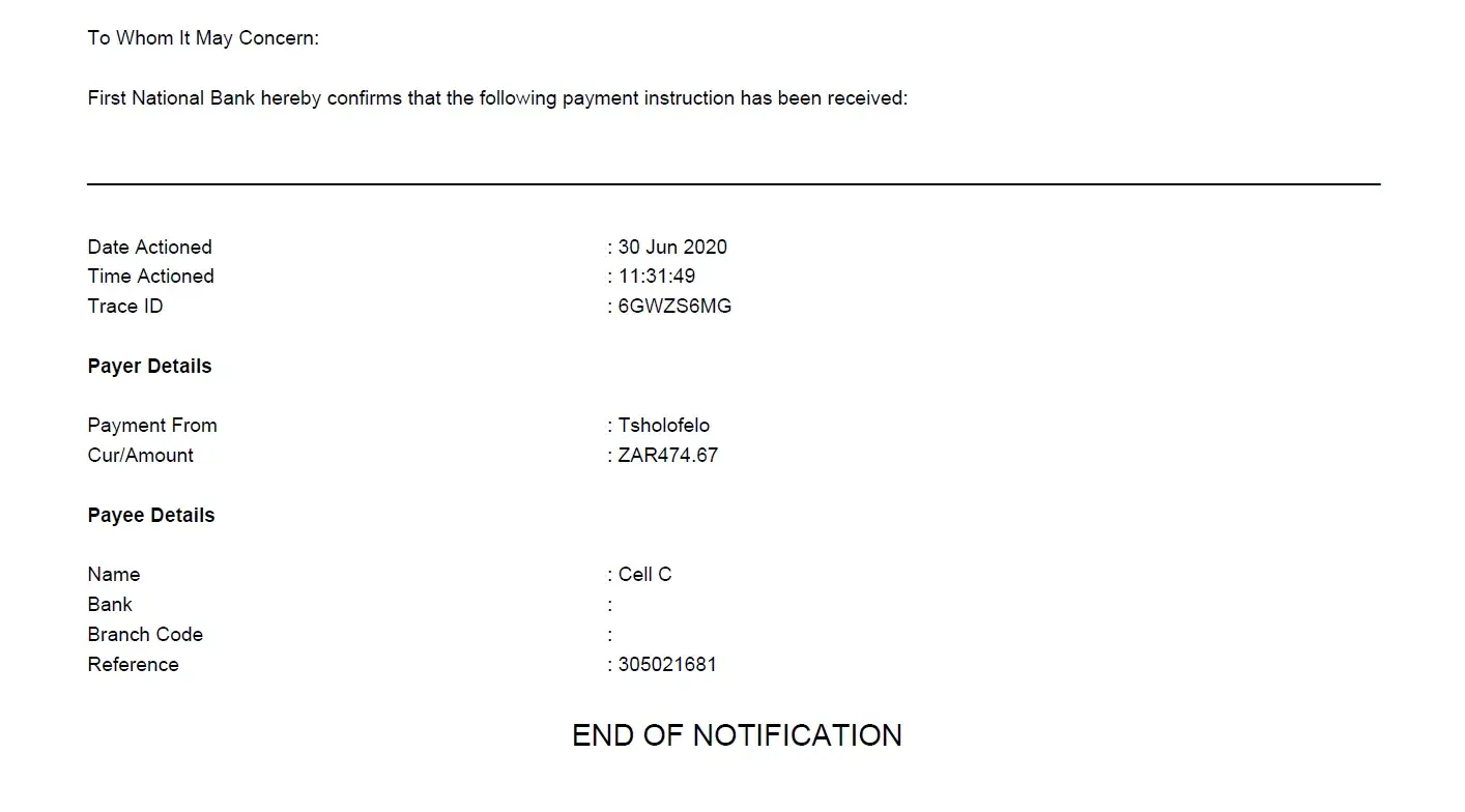 I have paid my account in full; you guys listed me for the account. I have sent numerous emails to Cell c, with the proof of payment and still you messed up my credit score.