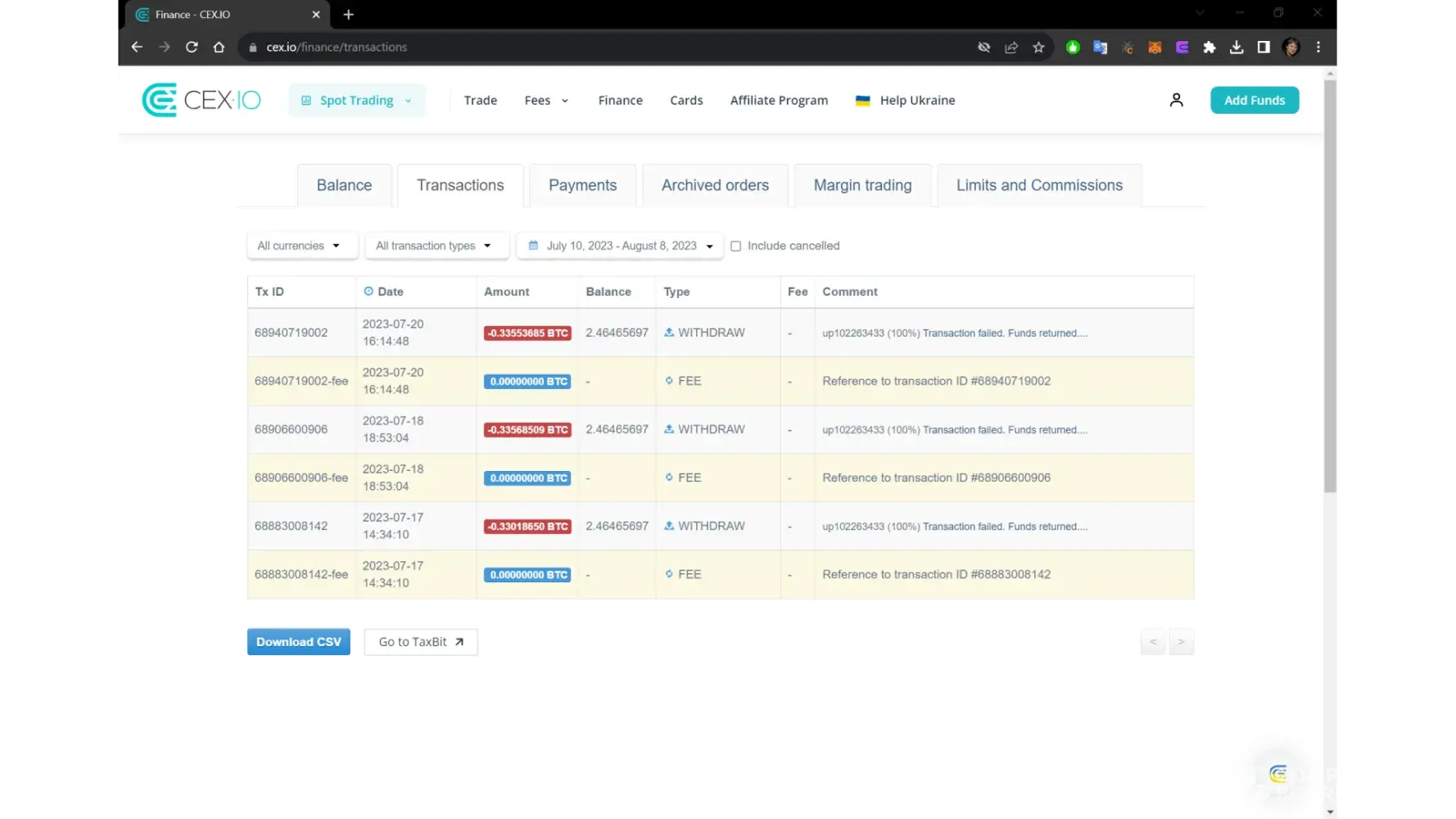 I can’t withdraw or transfer money from my cex.io account