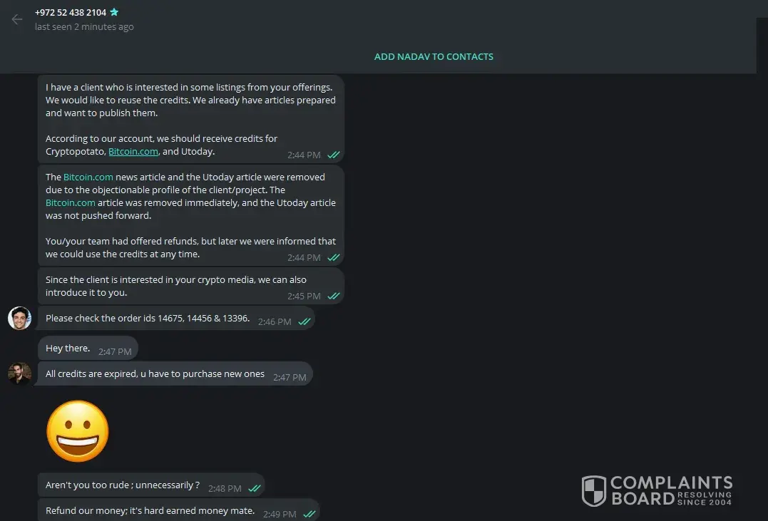 I am writing to formally complain ChainWire.org, a press release distribution service with which I have had significant issues regarding frozen funds and lack of resolution. Issue: I signed up with ChainWire.org as reseller and I opted media articles and made payments to ChainWire.org for press release distribution credits. Post few distribution of media...