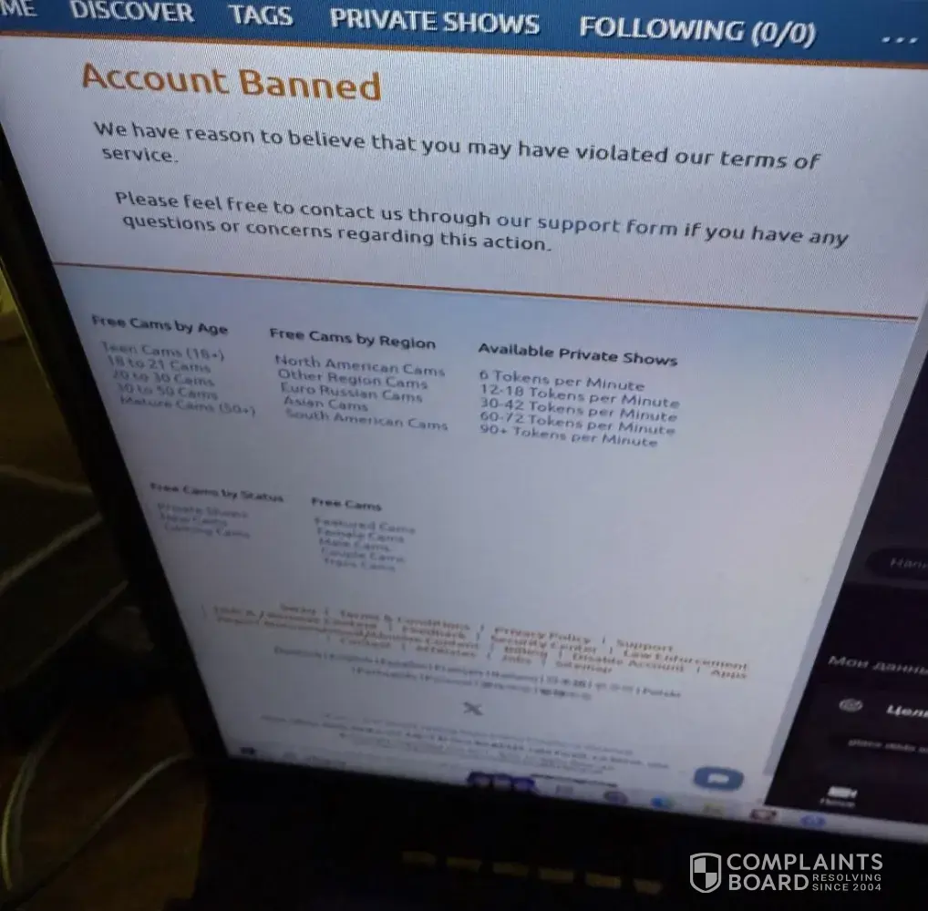 purchased lots of tokens and after i tip the model i'm watching i get account banned.I want a refund and if not i will take this further.