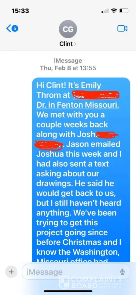 Our building site has been ready since July 3rd, 171 days ago. The building was supposed to be finished in August. Then we were told September. Then it was October. Then it was November. The timeline kept creeping back without explanation. They put our project “on hold†and put other people’s timelines ahead of ours, but without telling us – the date in our contract would come and go and we would have to chase them down for answer. Our salesperson manipulated timelines and advanced projects ahead of ours and, of course, lied to us about it. He was ultimately terminated, but absolutely nothing was done to make things right with us or to compensate for several months of delay—despite assurances from our new salesperson, John, that the project would get back on track. We escalated our issue to Brian at corporate, who replied once referring us to Clint (the regional manager) and then stopped responding (see photos). Clint never responded at all.