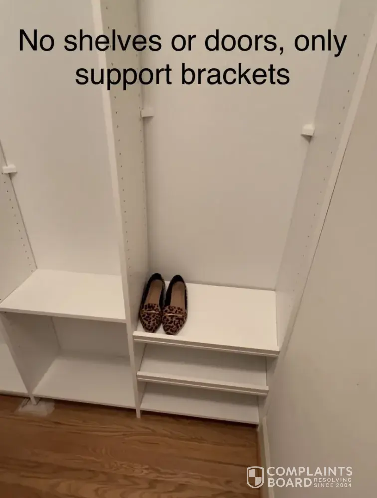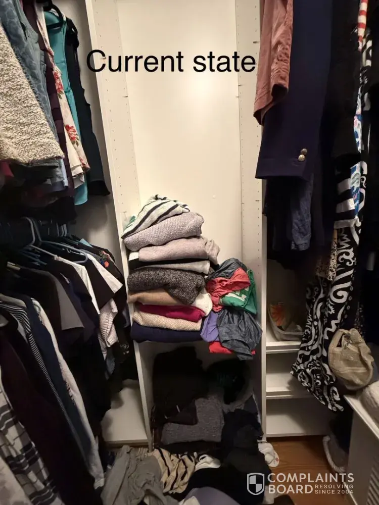 I paid Closets by Design $3,250 for a custom closet system in August 2025. As of today (April 2026), my closet is still incomplete and unusable.