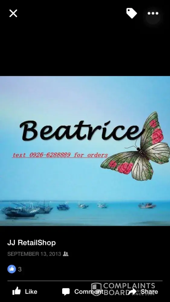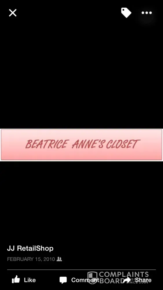 Read full complaint and 3 commentsJJ retail shop and Beatrice Anne Gellido - Beatrice Ann Gellido or Anarita Gellido