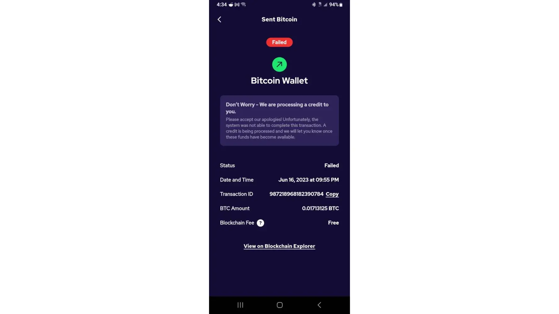 on June 16th I had sold $550 of bitcoin. the cash from this sale was to go to my isa debt card. two hours after the initial transaction coin informed that the transaction (bitcoin sale proceeds going to my card) FAILED, the notification said "do not worry we are processing a credit and the funds will go back to your account soon. 3 days no credit, for next 6 days i contact their customer service through the chat in their app and i am told that upper management is working on the problem. today i the 25th still no credit. where is my money
