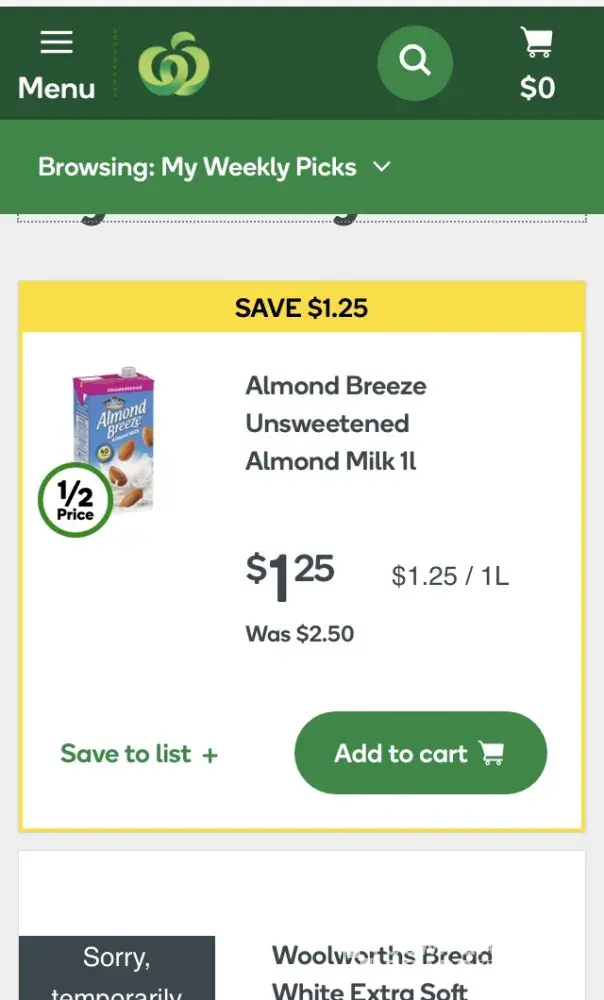 I asked Coles Ormeau if they would price match with Woolworths, they advertised Almond Breeze unsweetened Almond milk 1 litre for half price $1.25. I was told no. So I purchased 12 litres of it from there Ormeau Woolworths. I'm loyal to flybys ane Coles. It's disappointing that no questions were asked, it was just a straight no.