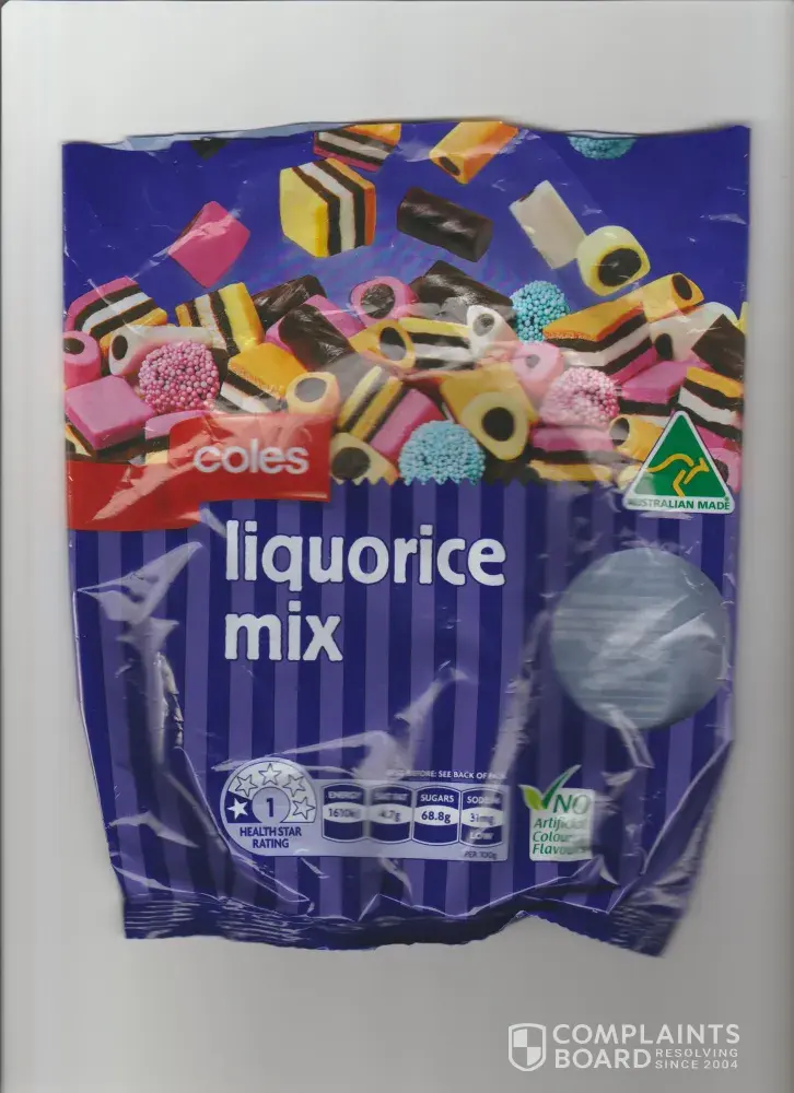 I would like to be compensated in the form of a coles credit so i can buy another bag which hopefully will have all of the described licorice mix inside. thank you.