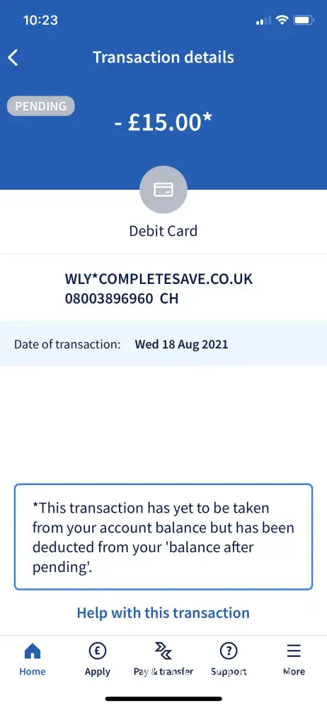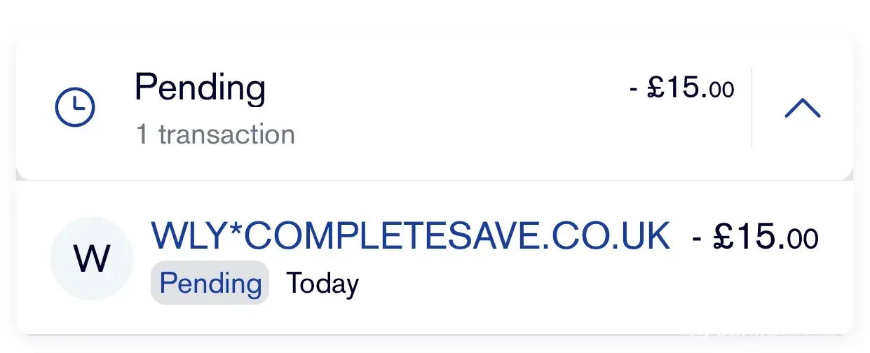 WLY* Complete Save has been taking money from my credit card since November 2020. I hardly used this card and that is why did not notice £15.00 taken from my credit card every month. I never subscribed for the Complete Save savings plan.