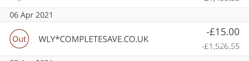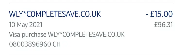 I have woke up this morning only to notice that I have been charged with a pending payment of £15 for ‘wly.completesave.co.uk' which is a company/ website that isn't familiar.