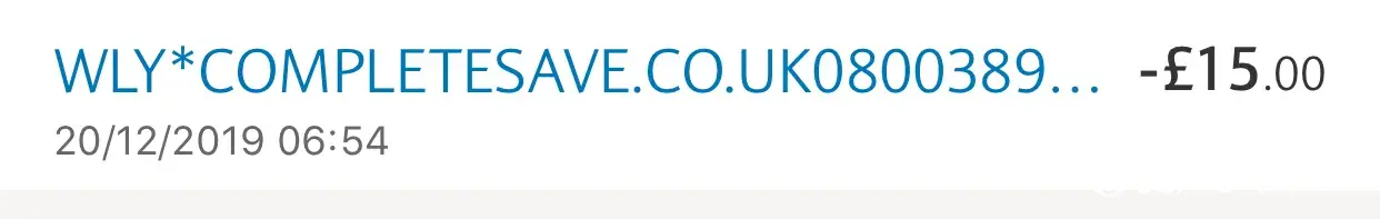 I have had £15 taken out of my bank account under the name ‘wly*completesave.co.uk', I have not given my name and/ or address of this website and in fact have never heard of them before. I would like a refund ASAP! I have not applied for anything and have not authorised any payments, I am with nationwide banking society and will be ringing them in the morning if nothing is done about this.