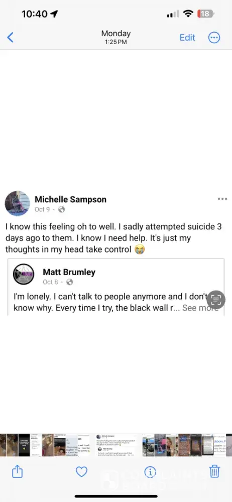 On the first pic is the screen shot from Michelle fb where she admitted that she is not in good mental health and needs health. Second pic also from Michelle fb( open to public).