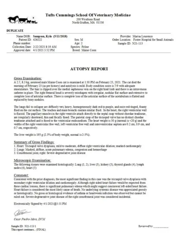 The Autopsy reports are crucial in this matter! As they confirm that it's not normal for a Maine Coon to pass so young.