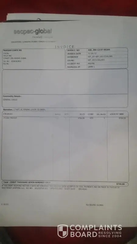 Read full complaint and 1 commentSoutheast Shipping LLC (SECPAC GLOBAL) - Breach of contract & trust. Misrepresentation & deliberate scam