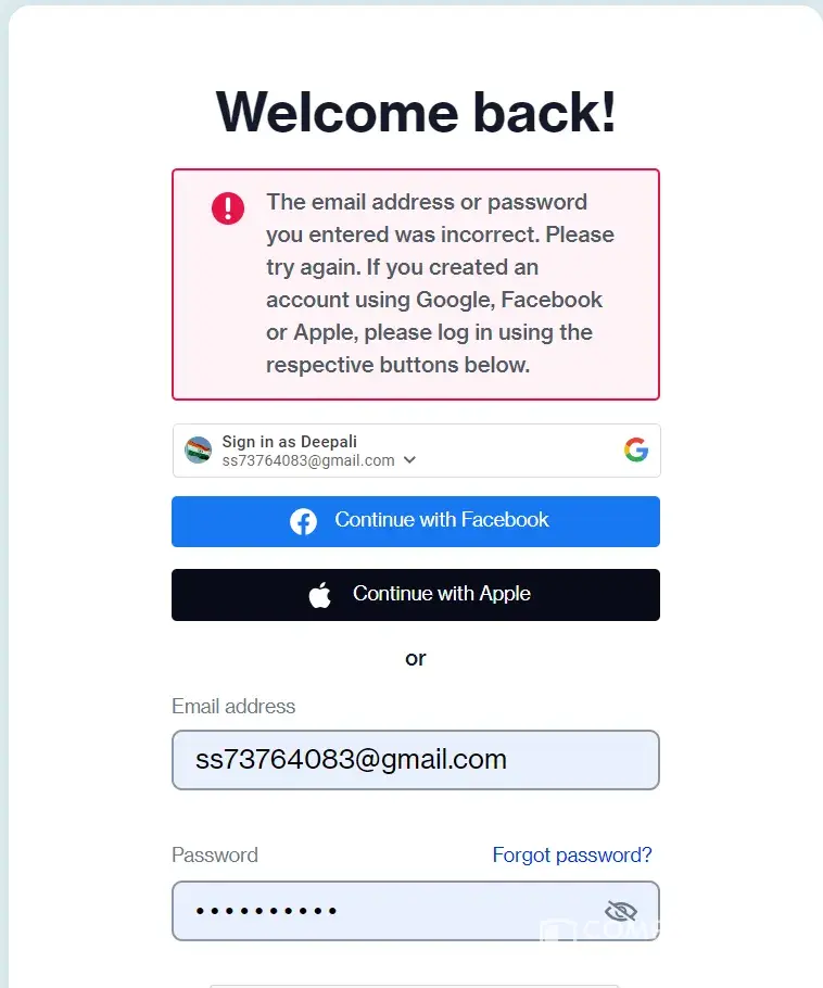 Desired outcome: i would like to get login into my account